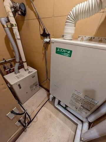 □キッチンコンロは都市ガス 給湯ボイラー エコフィール(省エネ型灯油給湯機)